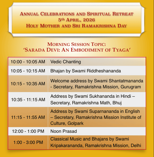 | Venue | Sarada Tapovan, Ramakrishna Mission, Village Jaulangi, P.O. Kafal Pani, Tehsil Teri Uttarakhand 249130 |